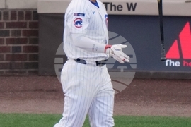 A Chicago Cubs security guard pauses during the national anthem before of Game 2 of a National League wild card baseball game against the San Diego Padres Wednesday, Oct. 1, 2025, in Chicago. (AP Photo/Nam Huh)