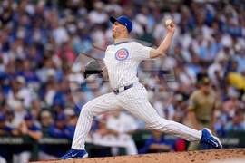 Chicago Cubs' Shota Imanaga returns to the dugout after the second inning of Game 2 of a National League wild card baseball game against the San Diego Padres Wednesday, Oct. 1, 2025, in Chicago. (AP Photo/Erin Hooley)
