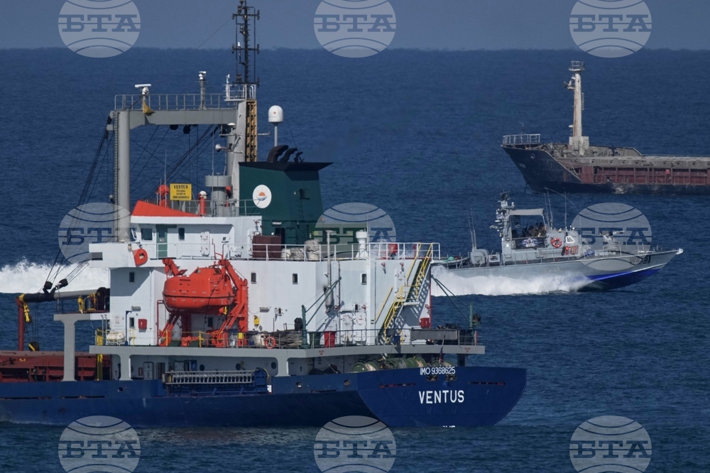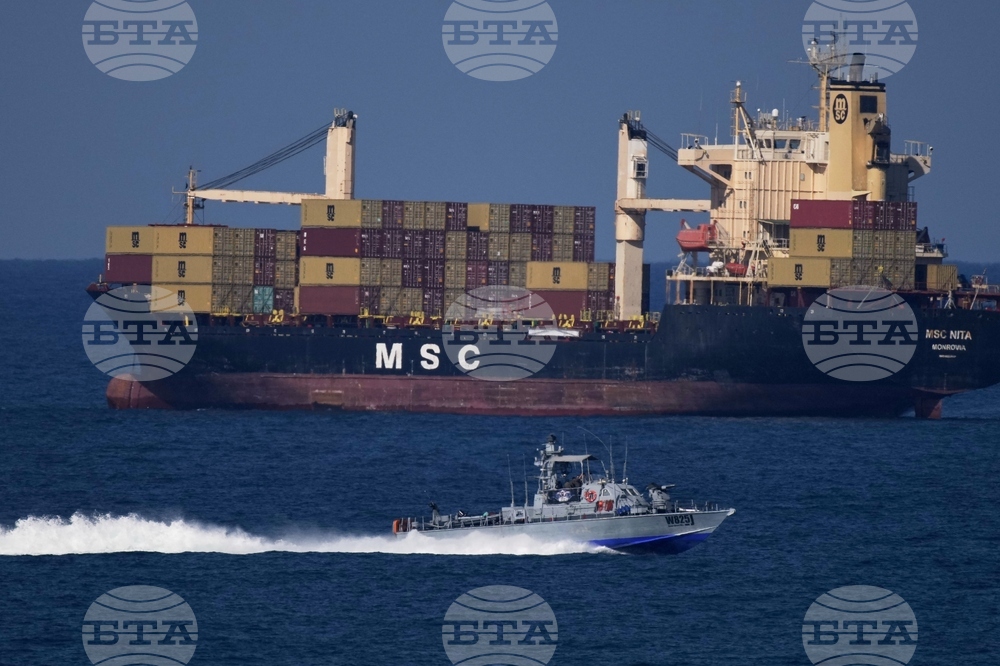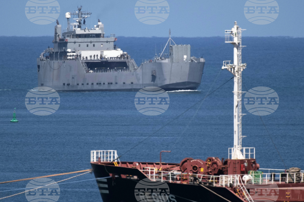 An Israeli Navy vessel moves in the Mediterranean sea toward the port of Ashdod, Israel, Thursday, Oct. 2, 2025. (AP Photo/Leo Correa)