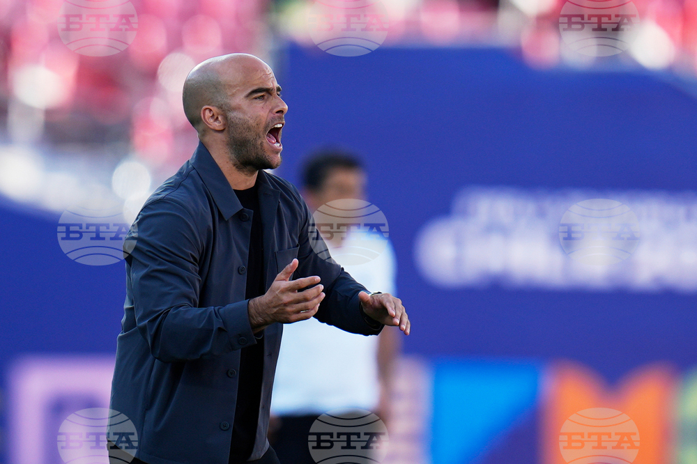 Mexico's coach Eduardo Arce reacts during a FIFA U-20 World Cup Group C soccer match against Spain at National Stadium in Santiago, Chile, Wednesday, Oct. 1, 2025. (AP Photo/Matias Delacroix)