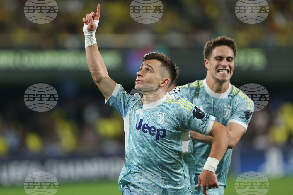 Juventus' Federico Gatti scores his side's opening goal during the Champions League opening phase soccer match between Villarreal and Juventus at the La Ceramica Stadium in Villarreal, Spain, Wednesday, Oct. 1, 2025. (AP Photo/Alberto Saiz)