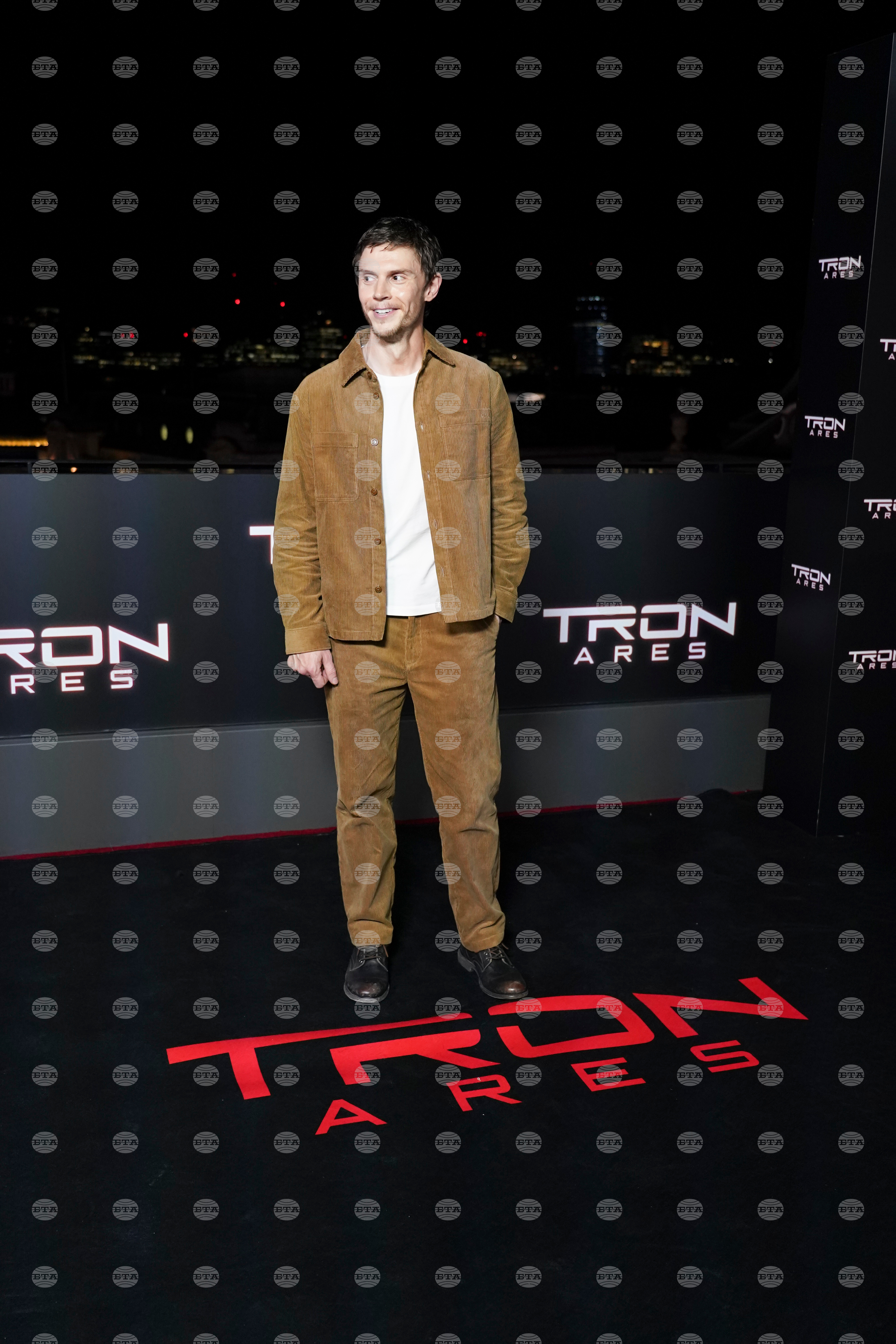 Evan Peters poses for photographers upon arrival at the premiere of the film 'Tron: Ares' on Wednesday, Oct. 1, 2025, in London. (Photo by Alberto Pezzali/Invision/AP)