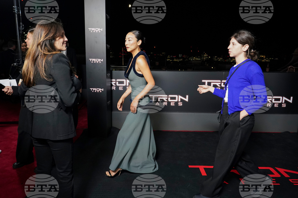 Greta Lee poses for photographers upon arrival at the premiere of the film 'Tron: Ares' on Wednesday, Oct. 1, 2025, in London. (Photo by Alberto Pezzali/Invision/AP)