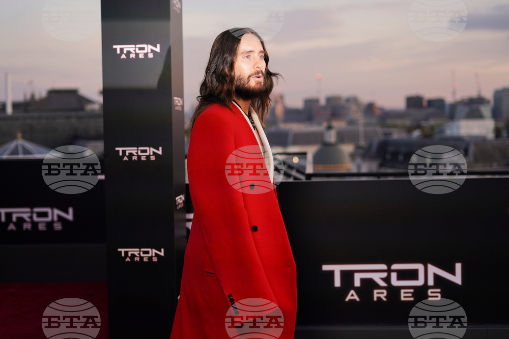 Jared Leto poses for photographers upon arrival at the premiere of the film 'Tron: Ares' on Wednesday, Oct. 1, 2025, in London. (Photo by Alberto Pezzali/Invision/AP)