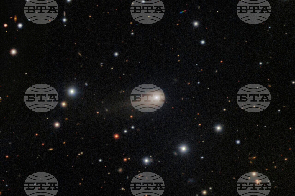 This image composed from multiple exposures and provided by NSF's NOIRLab shows a comet streaking across a star field above the International Gemini Observatory on Cerro Pachon, near La Serena, Chile. (NSF's NoirLab via AP)