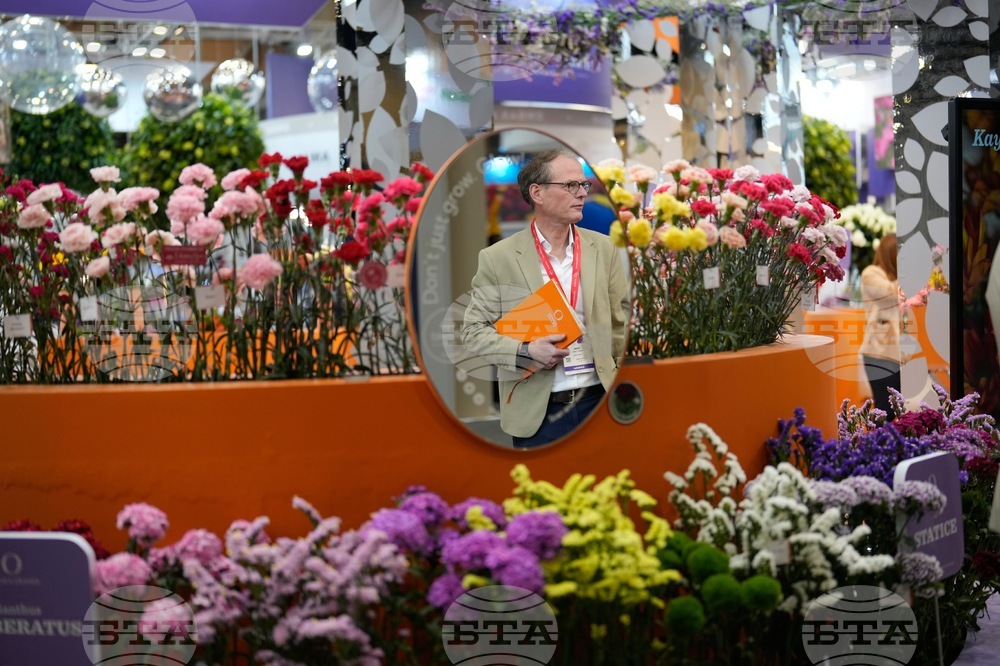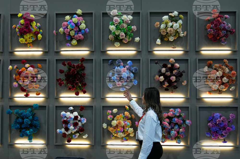 A visitor tours Proflora, a biennial fair where international flower sellers exhibit the latest trends, in Bogota, Colombia, Wednesday, Oct. 1, 2025. (AP Photo/Fernando Vergara)