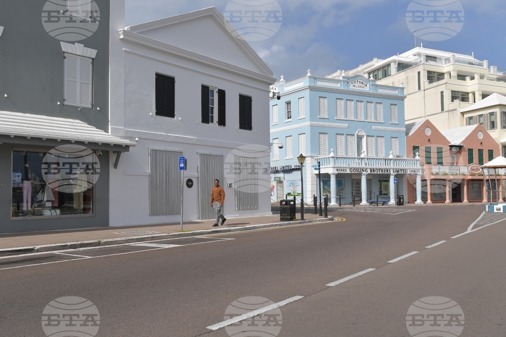 A man walks down a street with closed businesses ahead of Hurricane Imelda's expected arrival in Hamilton, Bermuda, Wednesday, Oct. 1, 2025. (AP Photo/Anthony Wade)
