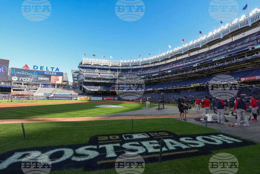The Boston Red Sox take batting practice before playing against the New York Yankees in Game 2 of an American League wild-card baseball playoff series, Wednesday, Oct. 1, 2025, in New York. (AP Photo/Frank Franklin II)