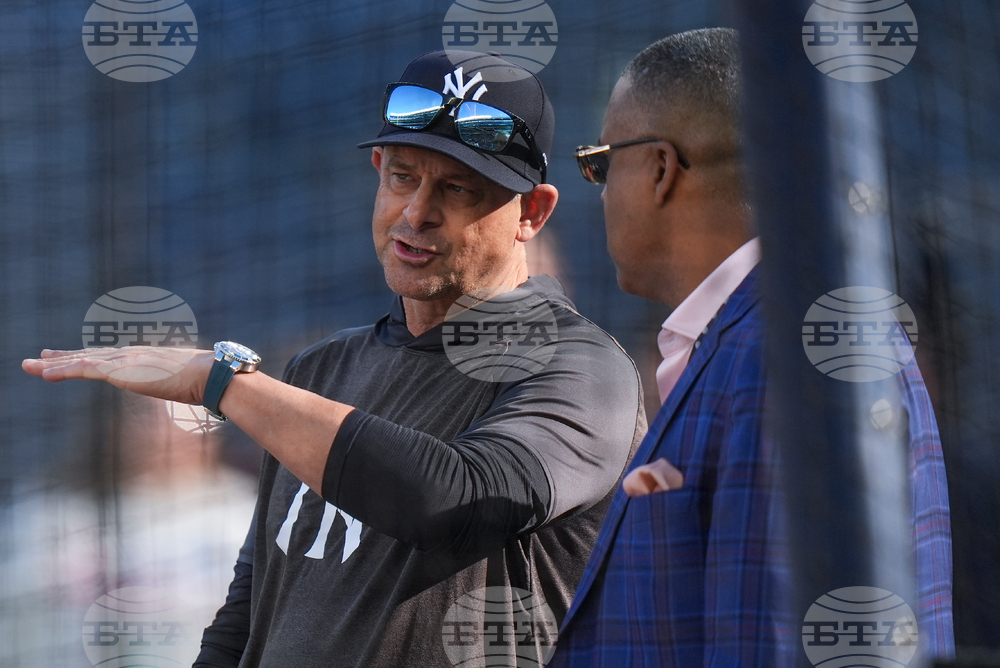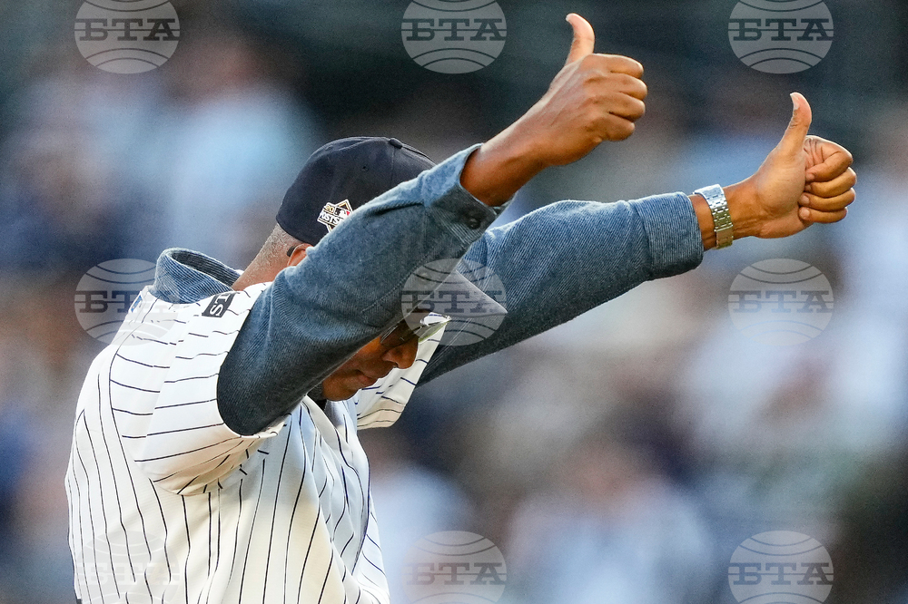 Former New York Yankees player Bernie Williams throws out the first pitch before Game 2 of an American League wild-card baseball playoff series between the New York Yankees and the Boston Red Sox, Wednesday, Oct. 1, 2025, in New York. (AP Photo/Yuki Iwamura)