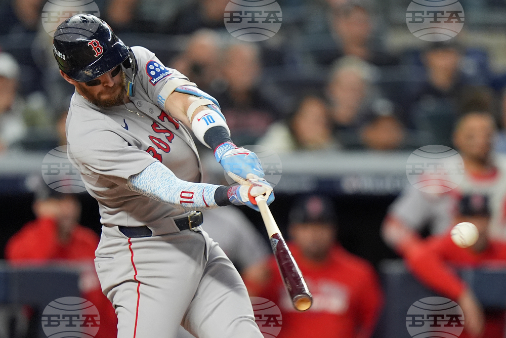 Boston Red SoxTrevor Story (10) connects for a solo home run against the New York Yankees during the sixth inning of Game 2 of an American League wild-card baseball playoff series, Wednesday, Oct. 1, 2025, in New York. (AP Photo/Frank Franklin II)