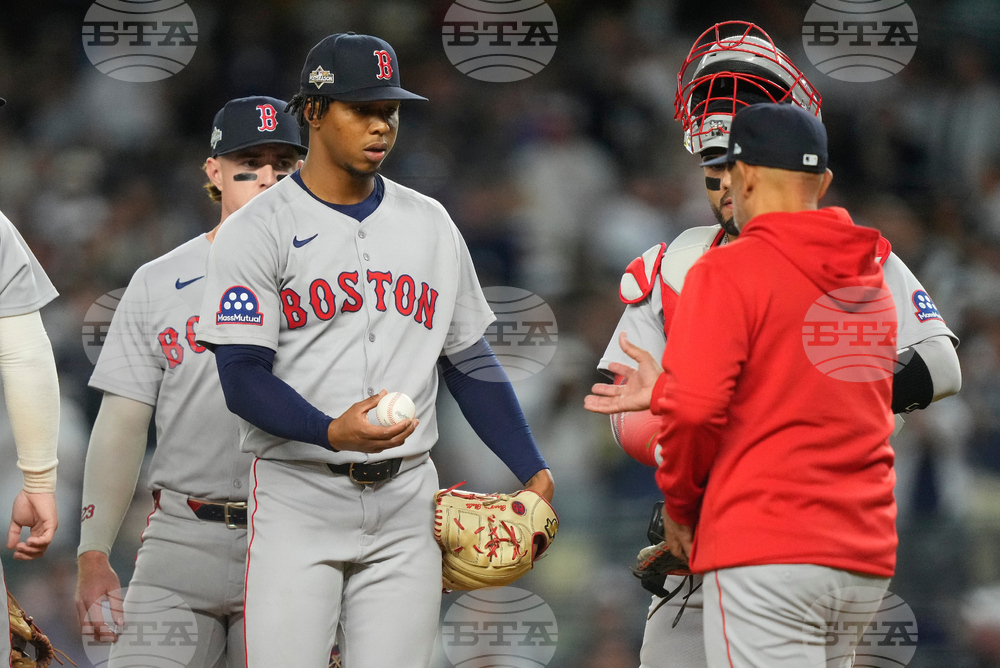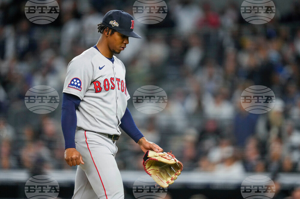 Boston Red Sox pitcher Brayan Bello leaves the game during the third inning of Game 2 of an American League wild-card baseball playoff series against the New York Yankees, Wednesday, Oct. 1, 2025, in New York. (AP Photo/Yuki Iwamura)