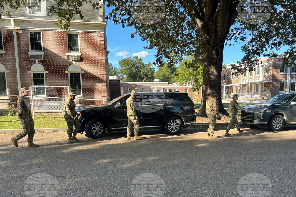 National Guard soldiers leave the Shelby County Office of Preparedness in Memphis, Tenn., Wednesday, Oct. 1, 2025. (AP Photo/Adrian Sainz)