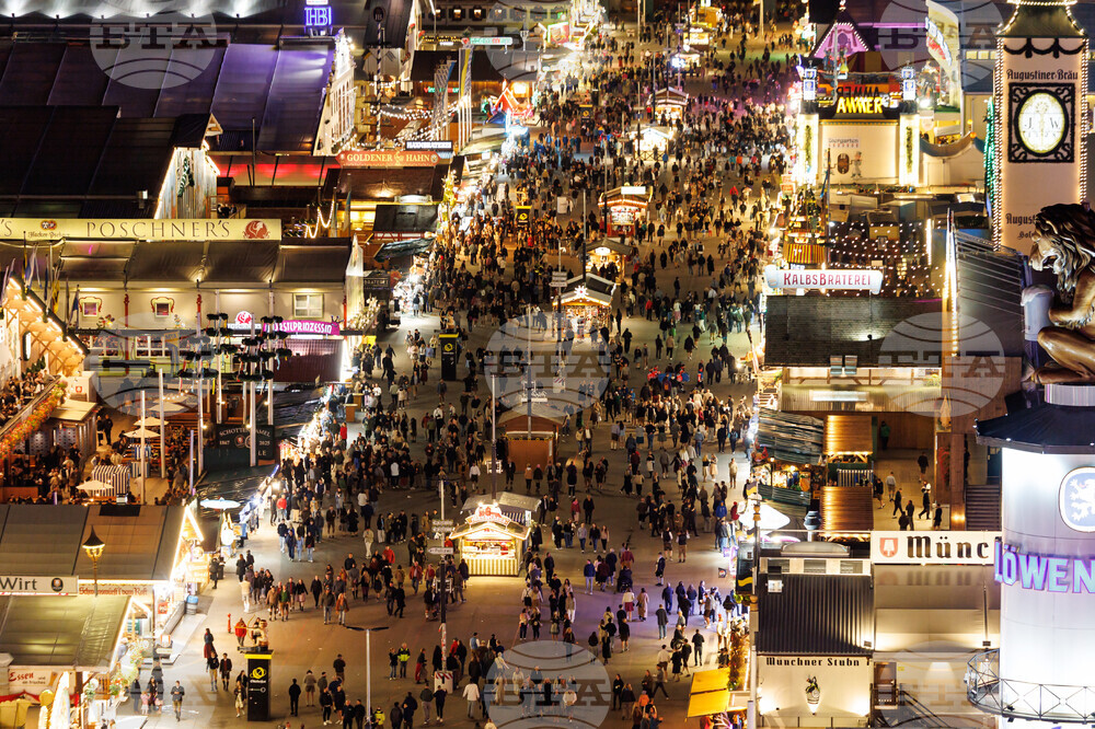 Visitors to the Oktoberfest walk across the grounds in Munich, Germany, Wednesday, Oct. 1, 2025, after reopening due to a bomb threat. (Daniel Karmann/dpa via AP)