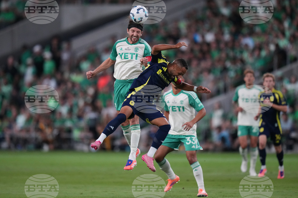 Austin FC midfielder Ilie S·nchez, left, heads the ball past Nashville SC midfielder Hany Mukhtar (10) during the first half of an U.S. Open Cup final soccer match in Austin, Texas, Wednesday, Oct. 1, 2025. (AP Photo/Eric Gay)