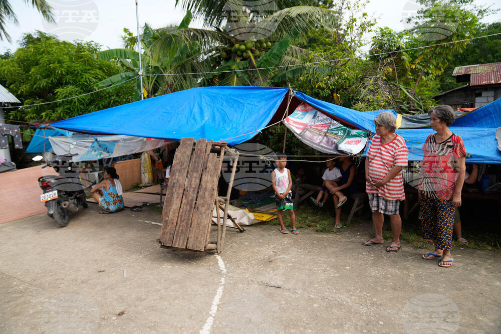 Survivors of Tuesday's earthquake stay at an evacuation center on Thursday, Oct. 2, 2025 in San Remigio, Cebu Province, Central Philippines. (AP Photo/Aaron Favila)