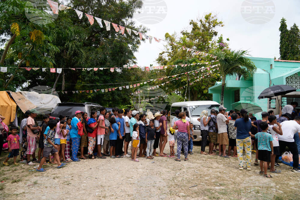 Survivors of Tuesday's earthquake line up for relief goods on Thursday, Oct. 2, 2025, in Bogo city, Cebu Province, Central Philippines. (AP Photo/Aaron Favila)