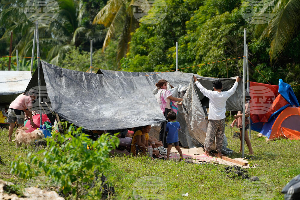 Earthquake survivors stay in tents on Thursday, Oct. 2, 2025 after Tuesday's strong quake in San Remigio, Cebu Province, Central Philippines. (AP Photo/Aaron Favila)