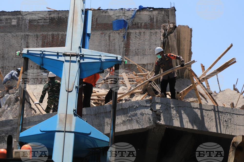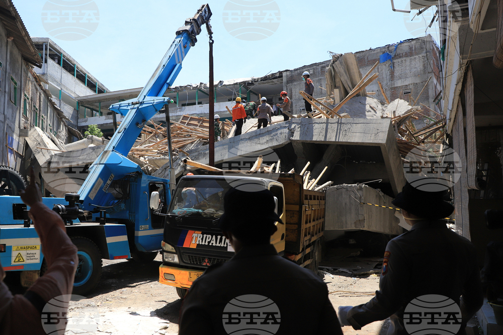 Rescuers clear the rubble at the site where a building under construction collapsed Monday at an Islamic boarding school in Sidoarjo, East Java, Indonesia, Thursday, Oct. 2, 2025. (AP Photo/Trisnadi)