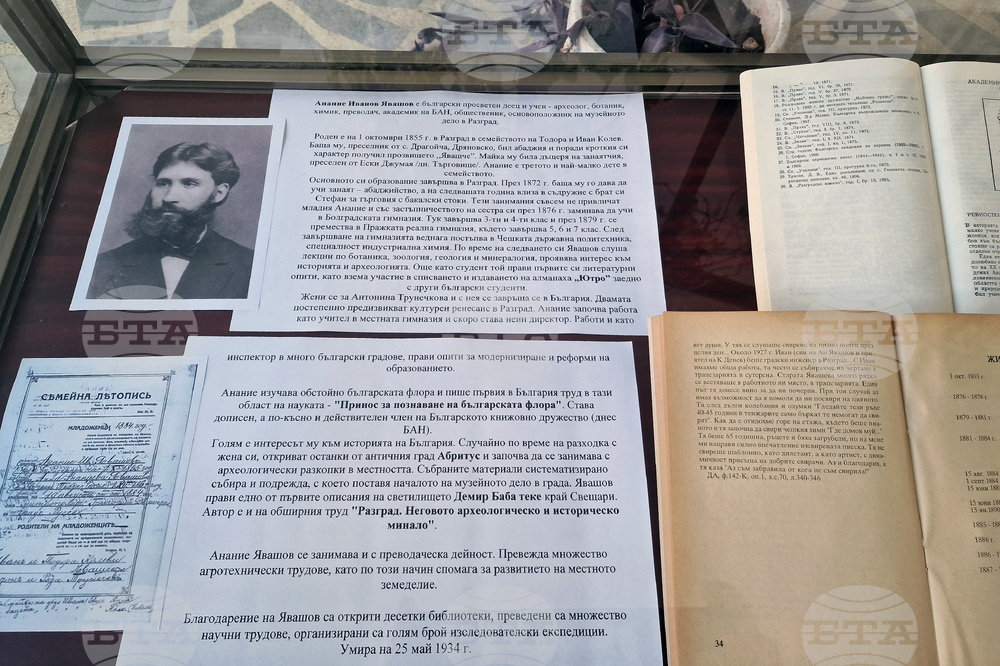 Разград (2 октомври 2025) С документална изложба Регионалната библиотека „Проф. Боян Пенев” в Разград почете 170-годишнната от рождението на акад. Анание Явашов. Тематичната експозиция, посветена на живота и делото на именития общественик, е подредена във фоайето на библиотеката.