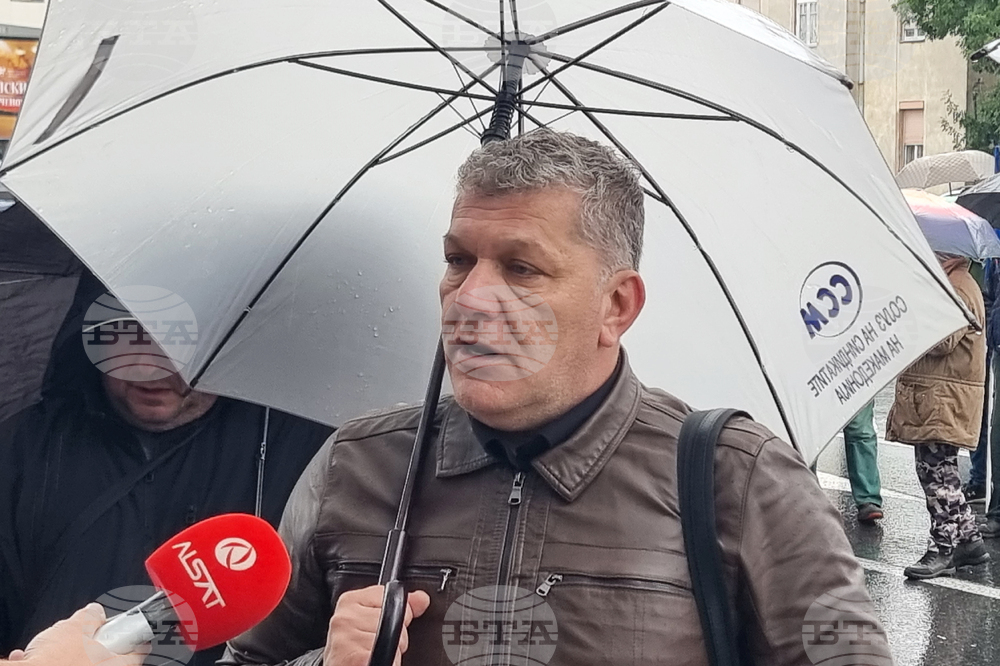 Скопие (2 октомври 2025) Синдикатът на работниците от комуналните дейности (СУТКОЗ) - единственият браншов синдикат в Северна Македония - организира протест. Причината е неизплатеното възнаграждение за месец август, както и неплатените здравни и социални осигуровки. Протестиращите са служители във фирмите „Флораком“ и „Луна“, които са дъщерни дружества на публичното предприятие „Паркове и зеленина“. На снимката: изявление на медиите дава председателят на синдиката СУТКОЗ Стоянче Кашиковски.