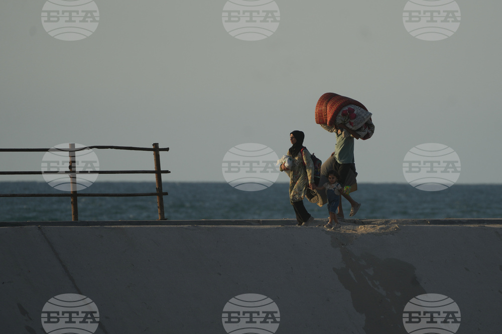 Displaced Palestinians flee northern Gaza carrying their belongings along the coastal road near Wadi Gaza, Thursday, Oct. 2, 2025. (AP Photo/Abdel Kareem Hana)