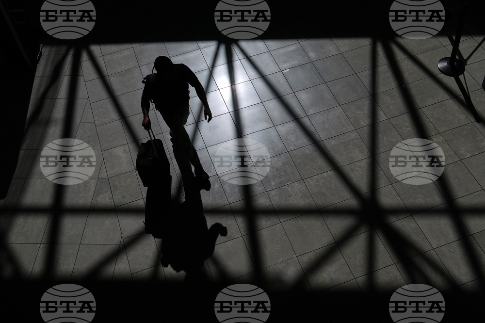A traveler walks down a hallway with luggage at the Portland International Airport on Wednesday, Oct. 1, 2025, in Portland, Ore. (AP Photo/Jenny Kane)