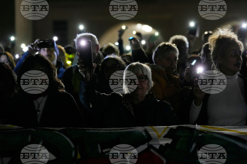 Medical staff stage a flash mob 'Lights on Palestine' to remember the more than 60 thousand Palestinians killed in these last two years by the Israeli army, at the Niguarda Hospital, in Milan, Thursday, Oct. 2, 2025. (AP Photo/Luca Bruno)
