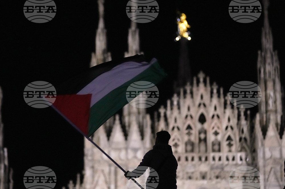 Pro-Palestinian demonstrators protest in Milan, Italy, Oct. 2, 2025, in solidarity with the Global Sumud Flotilla after ships were intercepted by the Israeli navy. (Claudio Furlan/LaPresse via AP)