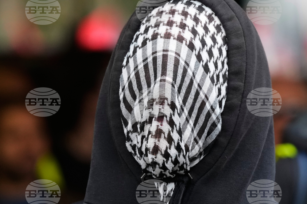 A pro-Palestinian demonstrator gathers for a national general strike called by different unions to protest against the situation in Gaza two days after Israeli forces intercepted a Gaza-bound aid flotilla in the Mediterranean Sea, in Milan, Italy, Friday, Oct. 3, 2025. (AP Photo/Luca Bruno)