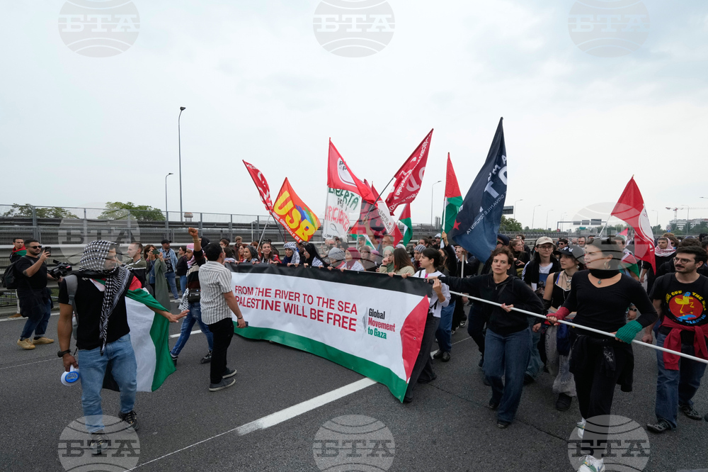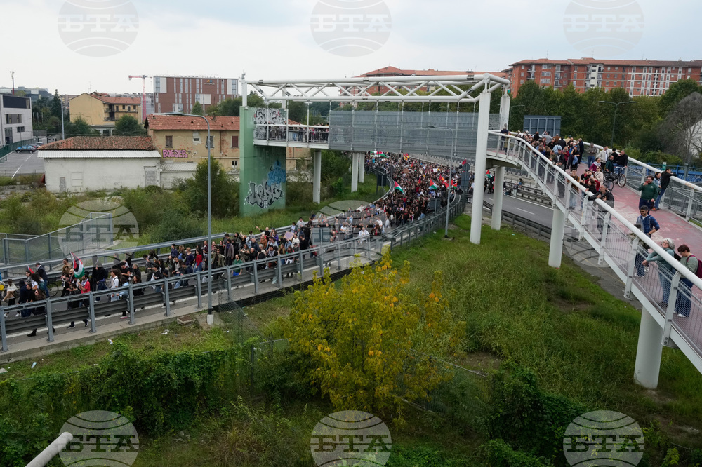 Pro-Palestinian demonstrators march along the Milan's ring road as they gather for a national general strike called by different unions to protest against the situation in Gaza two days after Israeli forces intercepted a Gaza-bound aid flotilla in the Mediterranean Sea, in Milan, Italy, Friday, Oct. 3, 2025. (AP Photo/Luca Bruno)