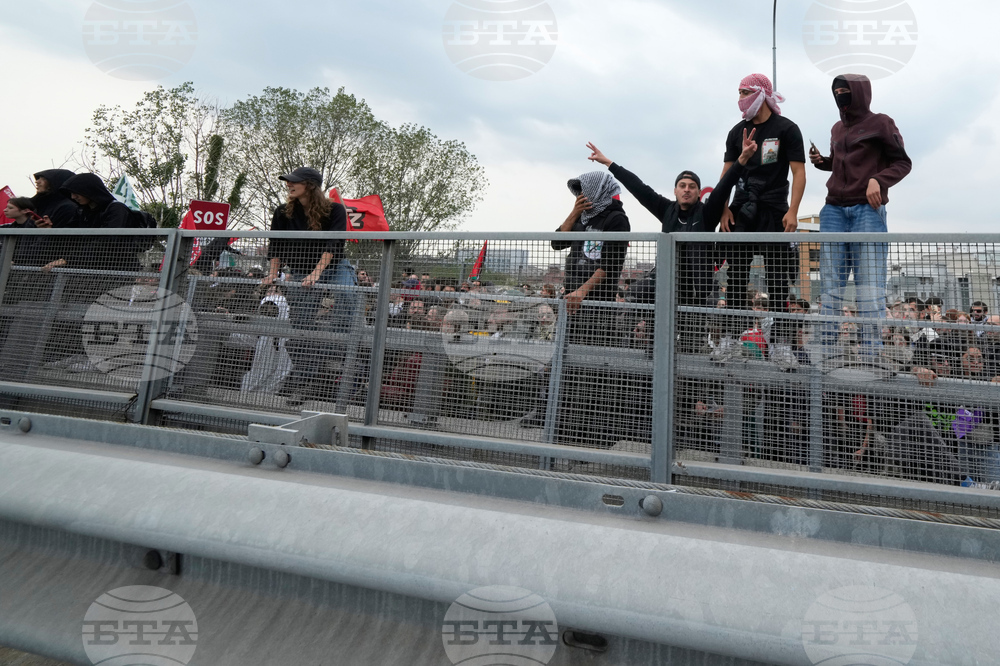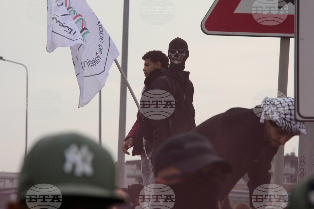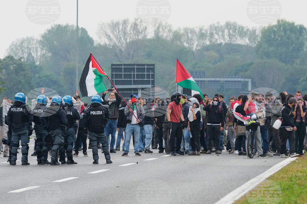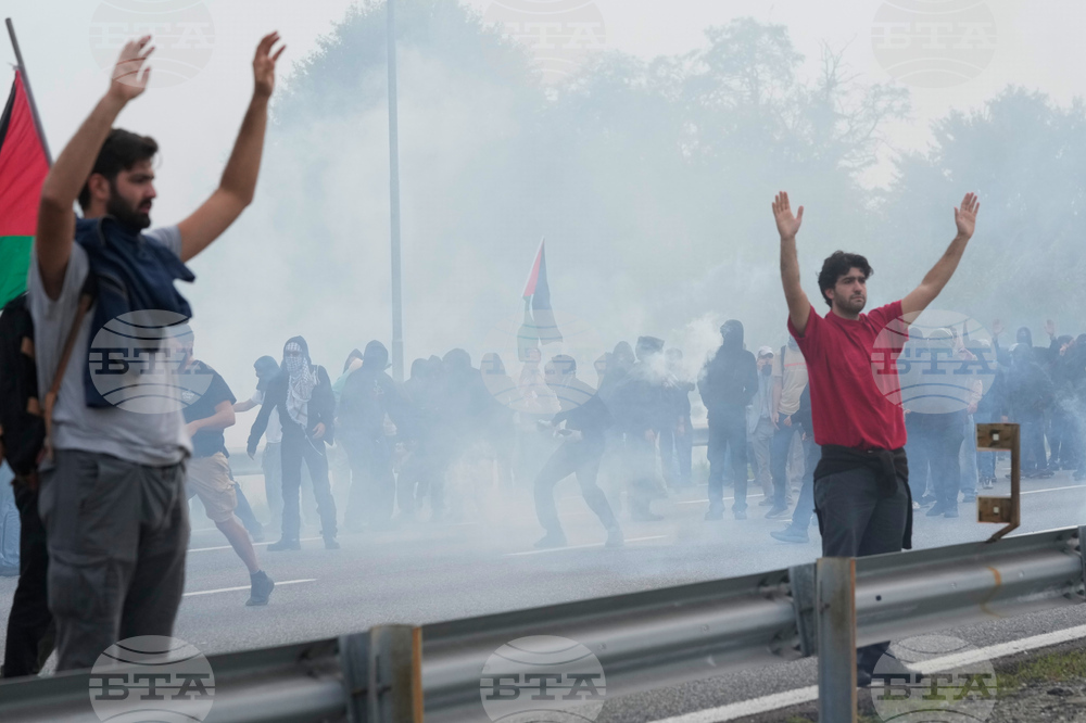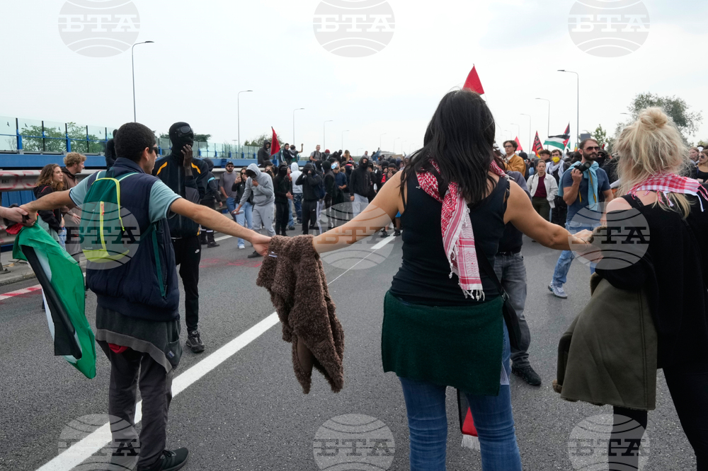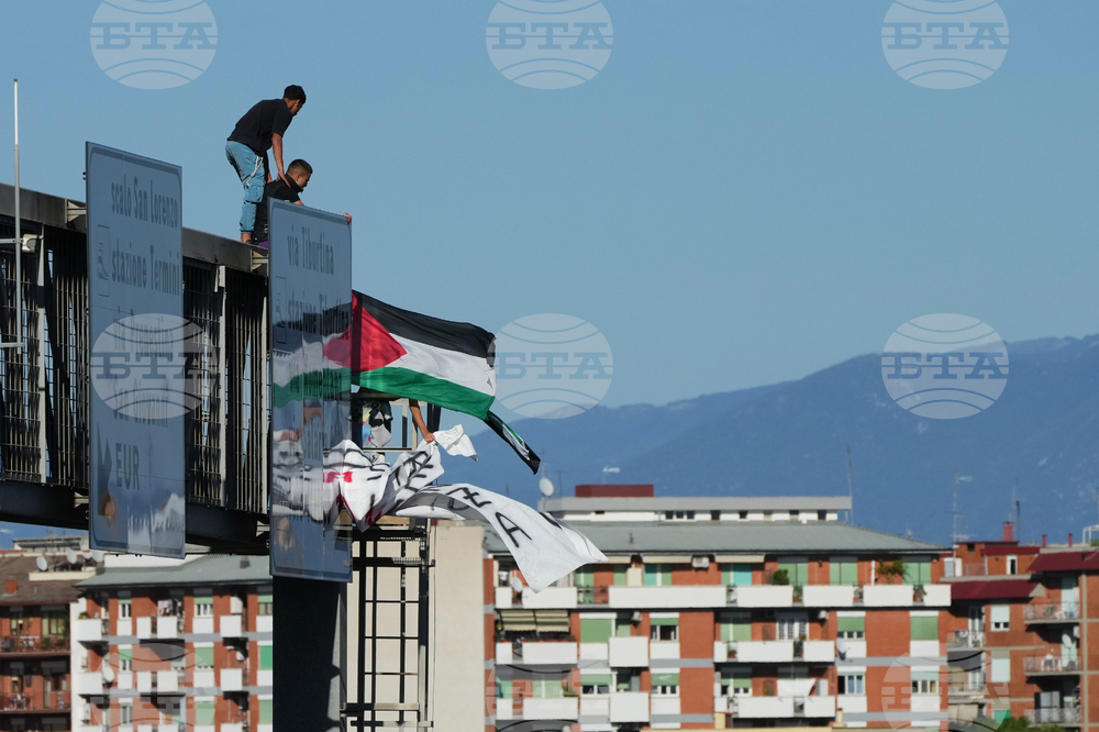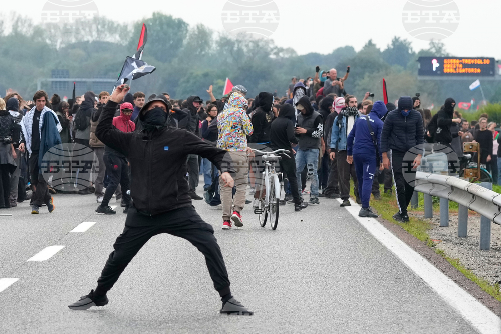 Pro-Palestinian demonstrators block a railway at the train station in Brescia, Italy, Oct. 2, 2025, during a protest in solidarity with the Global Sumud Flotilla after ships were intercepted by the Israeli navy. (Nelson Hasanpapaj/LaPresse via AP)