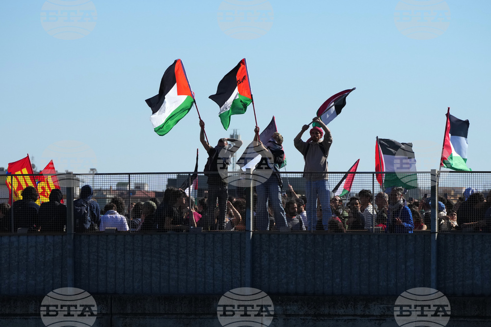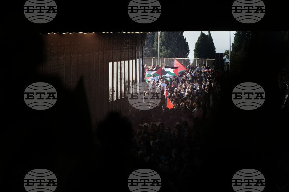 Pro-Palestinian demonstrators attend a rally in Turin, Italy, Oct. 2, 2025, in solidarity with the Global Sumud Flotilla after ships were intercepted by the Israeli navy. (Giulio Lapone/LaPresse via AP)