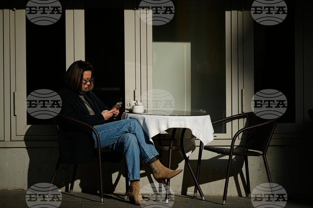 A woman sits at an outdoor table of a cafe in Moscow, Russia, Thursday, Oct. 2, 2025. (AP Photo/Pavel Bednyakov)