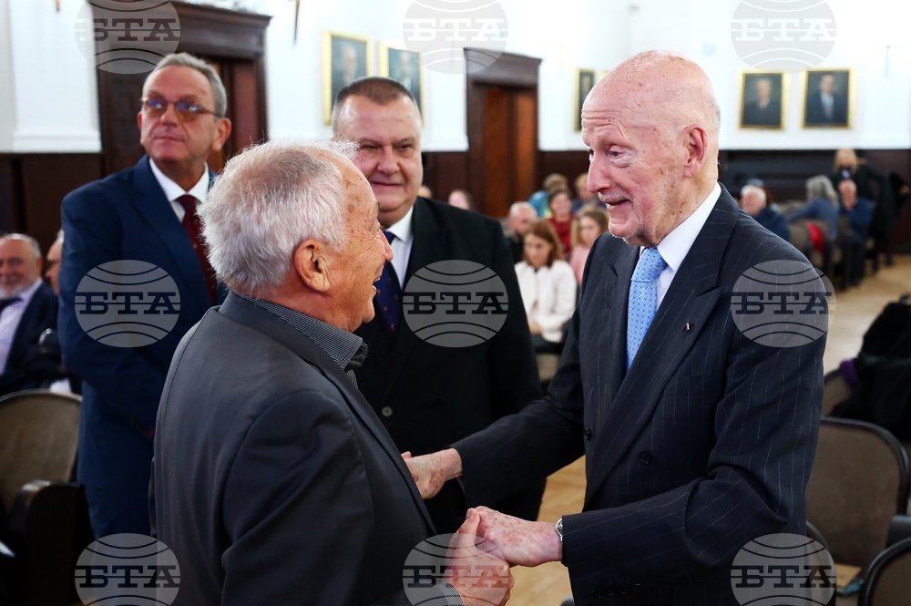 София (2 октомври 2025) Пълнометражният документален филм "Съединението - 140 години по-късно" се представя на академично събитие в зала "Проф. Марин Дринов" на Българската академия на науките (БАН), организирано под егидата на министъра на образованието и науката Красимир Вълчев и председателя на БАН чл.-кор. Евелина Славчева. На снимката: бившият председател на БАН акад. Никола Съботинов, премиерът на България в периода 2001 - 2005 г. Симеон Сакскобургготски (вдясно).