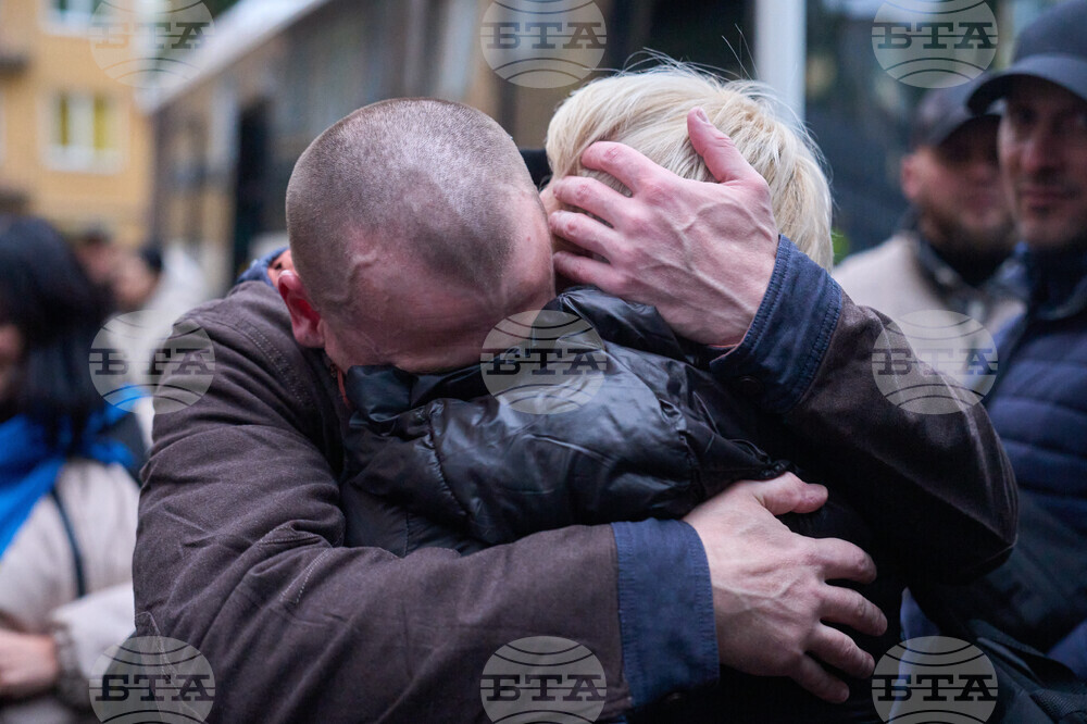 A soldier returning from Russian captivity hugs his wife during a POW exchange between Russia and Ukraine in Chernyhiv region, Ukraine, Thursday, Oct. 2, 2025. (AP Photo/Efrem Lukatsky)