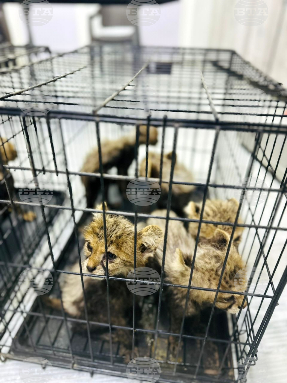In this photo released by the Ministry of Environment and Climate Change (MoECC), rescued cheetah cubs are fed in Berbera, Somaliland, a semi-autonomous region of Somalia, on Sep. 28, 2025. (MoECC via AP)