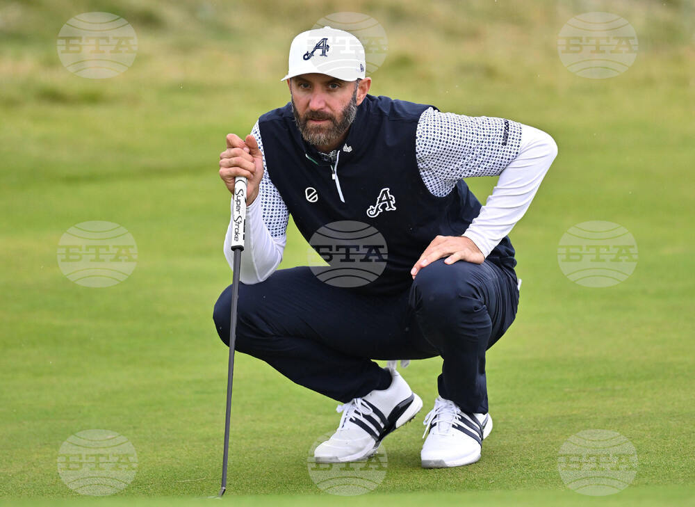 Dustin Johnson looks over the 15th green during the first round of the Dunhill Links Championship golf tournament at the Carnoustie Golf Links, Thursday, Oct. 2, 2025, in Carnoustie, Scotland. (Malcolm Mackenzie/PA via AP)