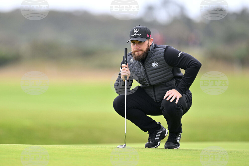 Tyrrell Hatton looks over the third green during the first round of the Dunhill Links Championship golf tournament at the Carnoustie Golf Links, Thursday, Oct. 2, 2025, in Carnoustie, Scotland. (Malcolm Mackenzie/PA via AP)