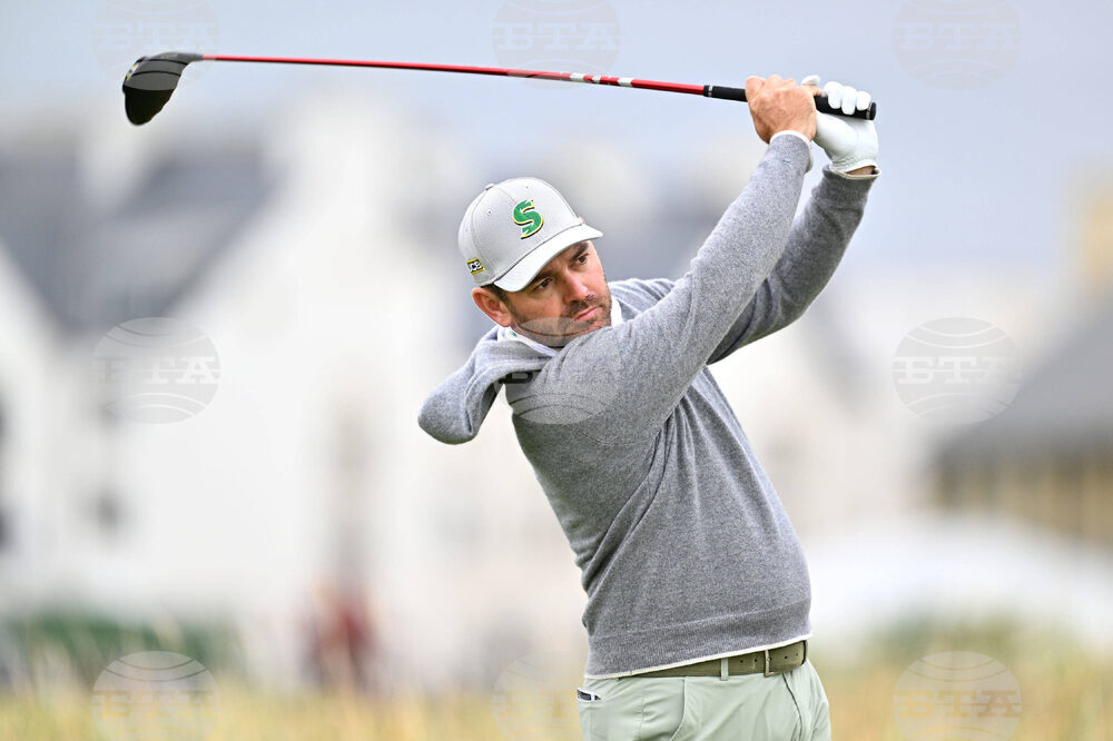 Louis Oosthuizen tees off the second hole during the first round of the Dunhill Links Championship golf tournament at the Carnoustie Golf Links, Thursday, Oct. 2, 2025, in Carnoustie, Scotland. (Malcolm Mackenzie/PA via AP)