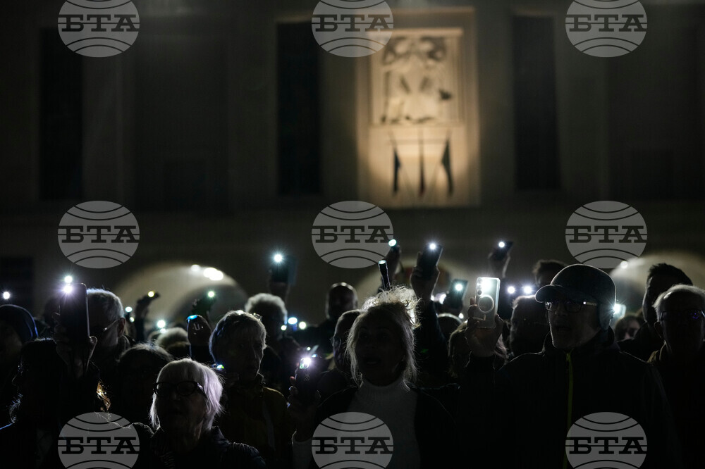 Medical staff stage a flash mob 'Lights on Palestine' to remember the more than 60 thousand Palestinians killed in these last two years by the Israeli army, at the Niguarda Hospital, in Milan, Thursday, Oct. 2, 2025. (AP Photo/Luca Bruno)