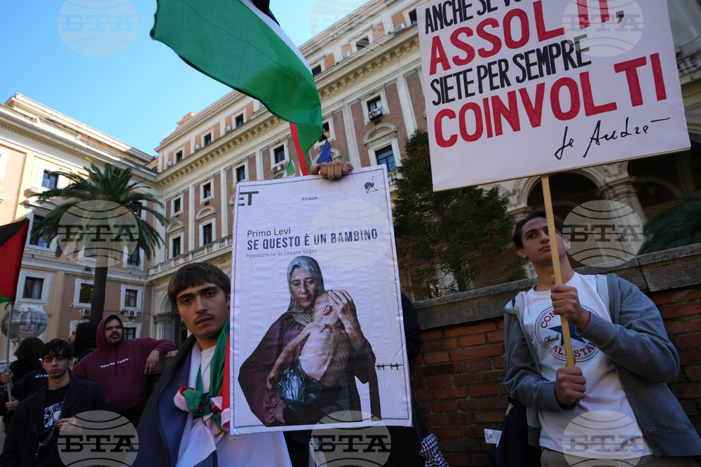 People gather for a pro-Palestinians demonstration, in Brescia, Italy, Friday, Oct. 3, 2025. (Riccardo Bortolotti/LaPresse via AP)