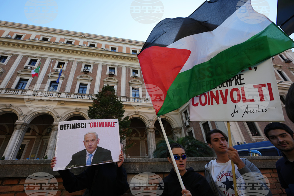 Demonstrators gather for a pro-Palestinians protest in Bologna, Italy, Friday, Oct. 3, 2025. (Guido Calamosca/LaPresse via AP)