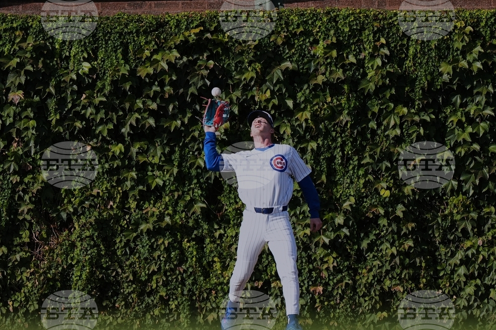 Chicago Cubs' Matt Shaw warms up before Game 3 of a National League wild card baseball game against the San Diego Padres Thursday, Oct. 2, 2025, in Chicago. (AP Photo/Erin Hooley)