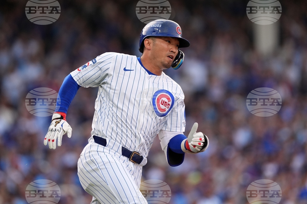 Chicago Cubs' Seiya Suzuki hits a double during the second inning of Game 3 of a National League wild card baseball game against the San Diego Padres Thursday, Oct. 2, 2025, in Chicago. (AP Photo/Nam Huh)