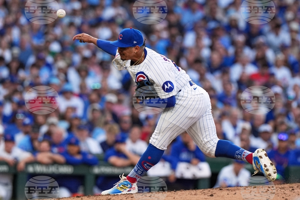 Chicago Cubs' Daniel Palencia throws during the fifth inning of Game 3 of a National League wild card baseball game against the San Diego Padres Thursday, Oct. 2, 2025, in Chicago. (AP Photo/Nam Huh)