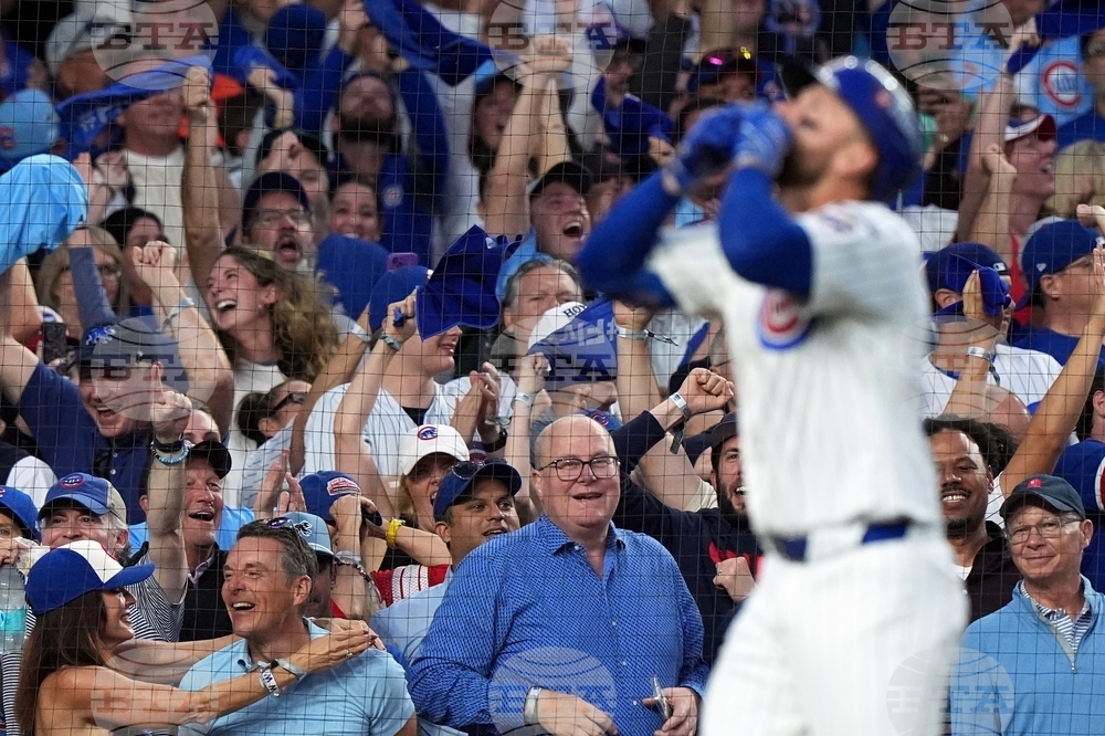 Fans react after Chicago Cubs' Michael Busch hits a home run during the seventh inning of Game 3 of a National League wild card baseball game against the San Diego Padres Thursday, Oct. 2, 2025, in Chicago. (AP Photo/Nam Huh)