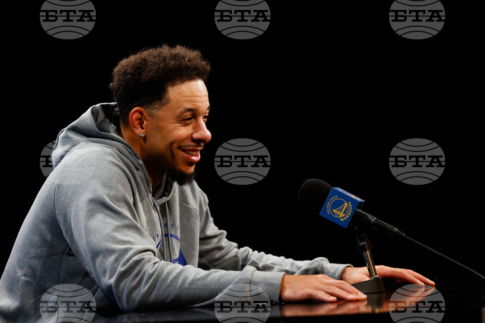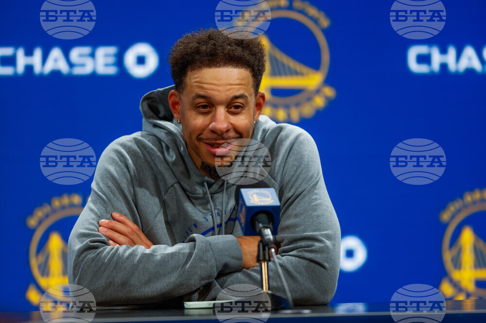 Golden State Warriors guard Seth Curry, the younger brother of Warriors guard Stephen Curry, answers questions during a news conference following an NBA basketball practice in San Francisco, Thursday, Oct. 2, 2025. (Yalonda M. James/San Francisco Chronicle via AP)/San Francisco Chronicle via AP)