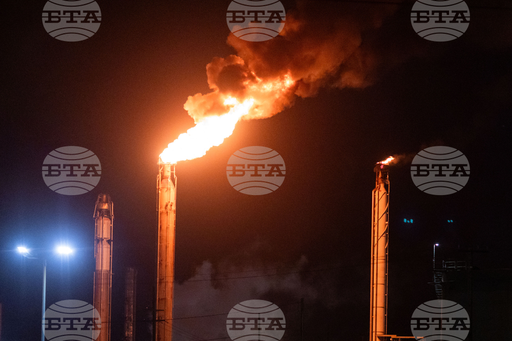 Flames rise from the Chevron refinery in El Segundo, Calif., Thursday, Oct. 2, 2025. (AP Photo/Ethan Swope)