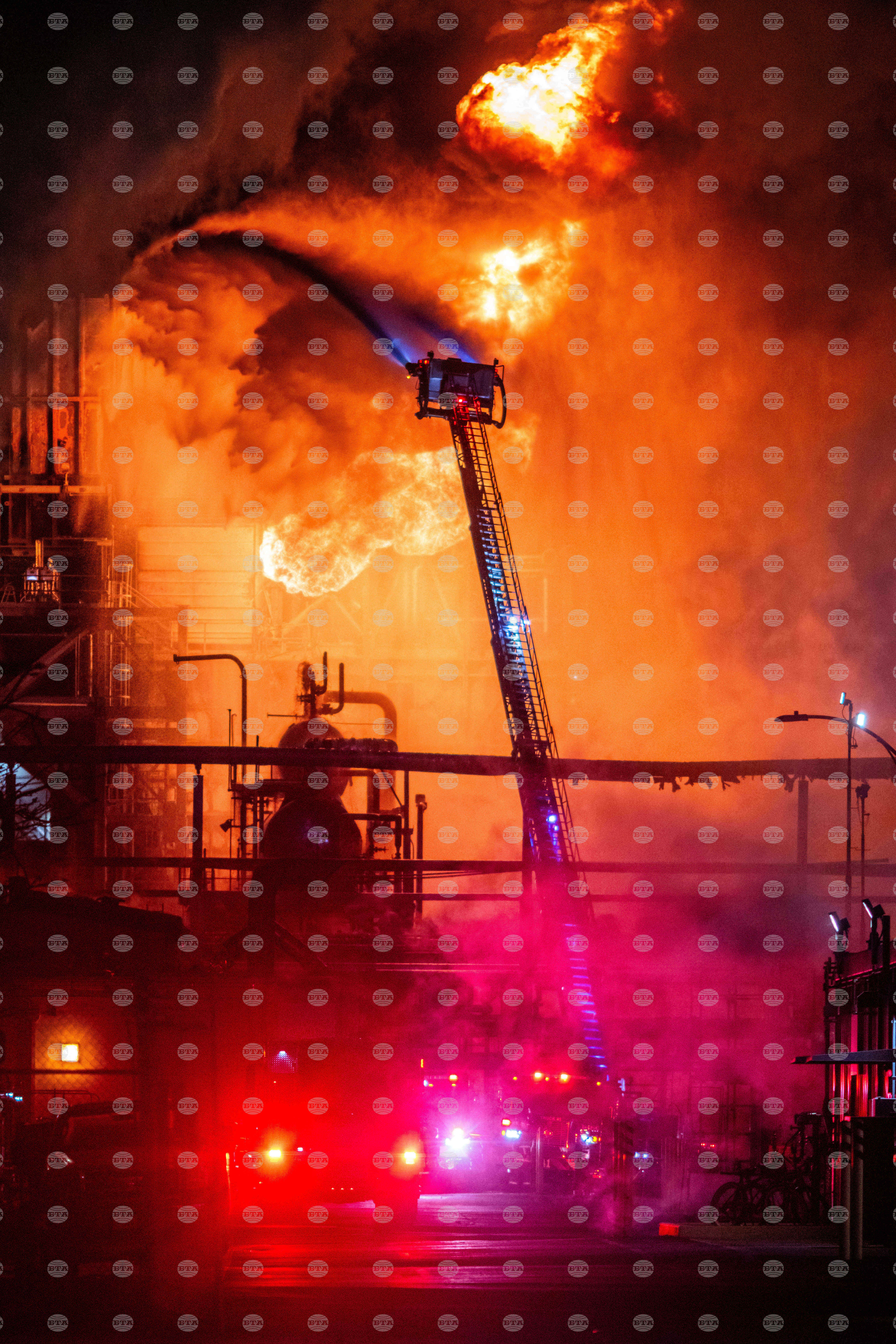 First responders at the scene as a massive fire broke out at the Chevron refinery in El Segundo, Calif., Thursday, Oct. 2, 2025. (AP Photo/Ethan Swope)