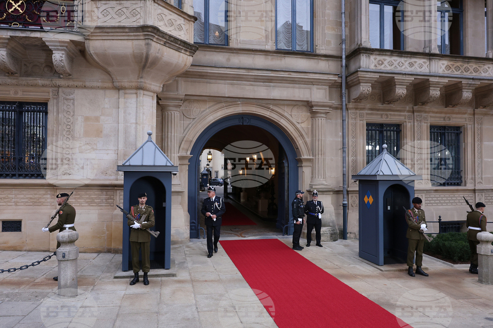 Luxembourg's Grand Duke Guillaume, center, and Luxembourg's Grand Duchess Stephanie, center left, arrive at the Grand Ducal Palace during the abdication and enthronement ceremony of Luxembourg's Grand Duke in Luxembourg, Friday, Oct. 3, 2025. (Claude Piscitelli, Pool Photo via AP)